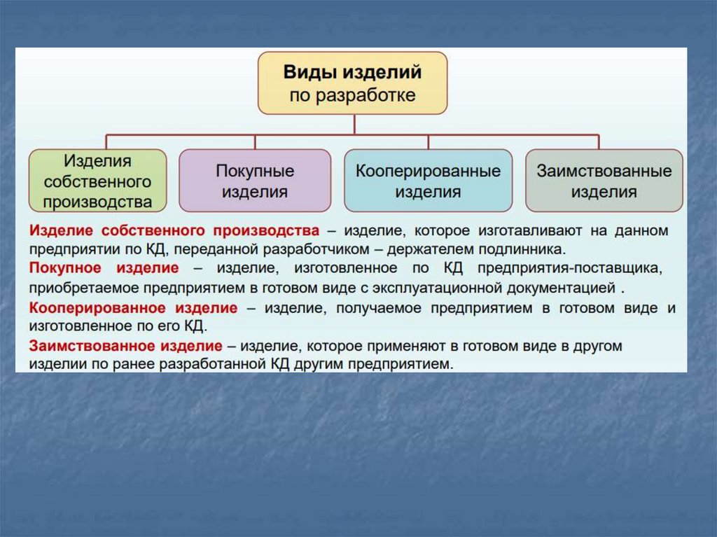 Изделие - предмет или набор предметов производства, подлежащихизготовлению в организации (на предприятии) по конструкторской