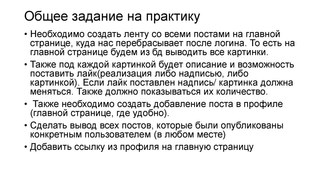 Общее задание на практику• Необходимо создать ленту со всеми постами на главной
