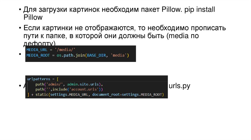• Для загрузки картинок необходим пакет Pillow. pip installPillow