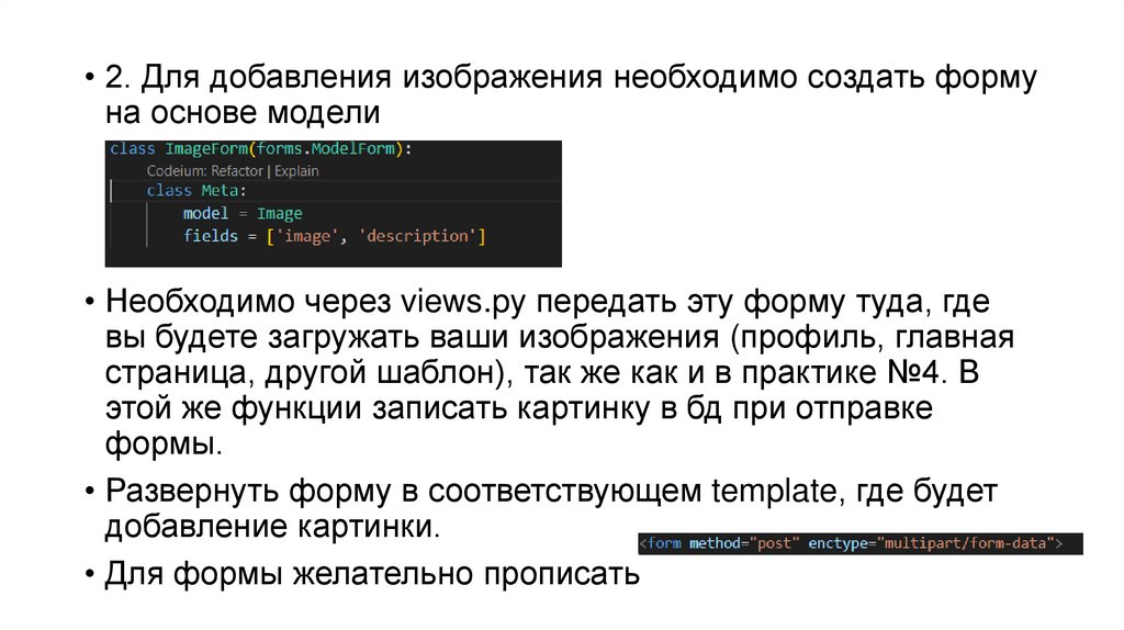 • 2. Для добавления изображения необходимо создать формуна основе модели
