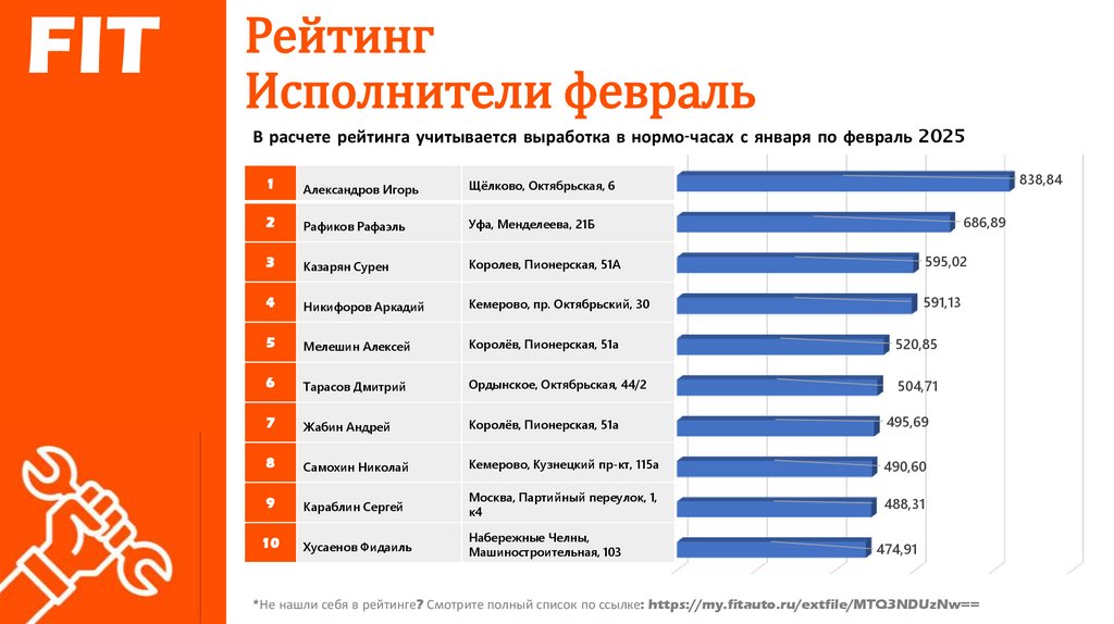 В расчете рейтинга учитывается выработка в нормо-часах с января по февраль 2025