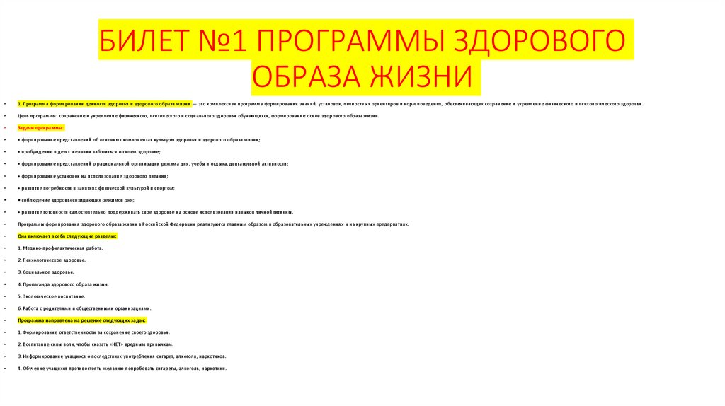 БИЛЕТ №1 ПРОГРАММЫ ЗДОРОВОГООБРАЗА ЖИЗНИ