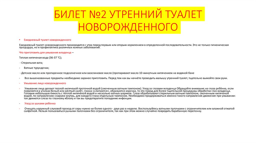 БИЛЕТ №2 УТРЕННИЙ ТУАЛЕТНОВОРОЖДЕННОГО