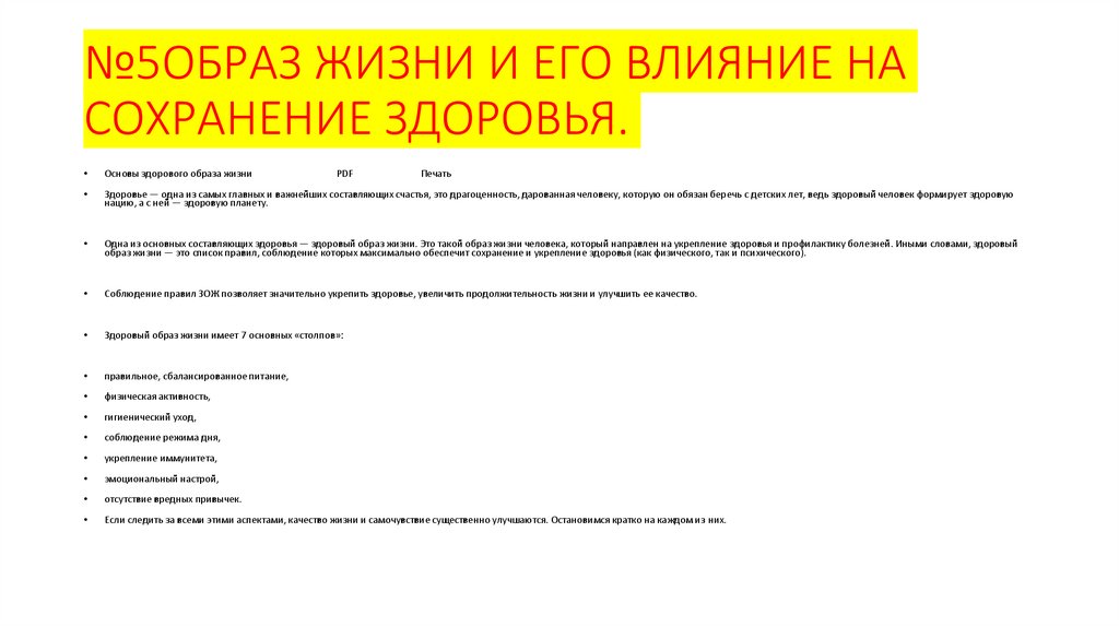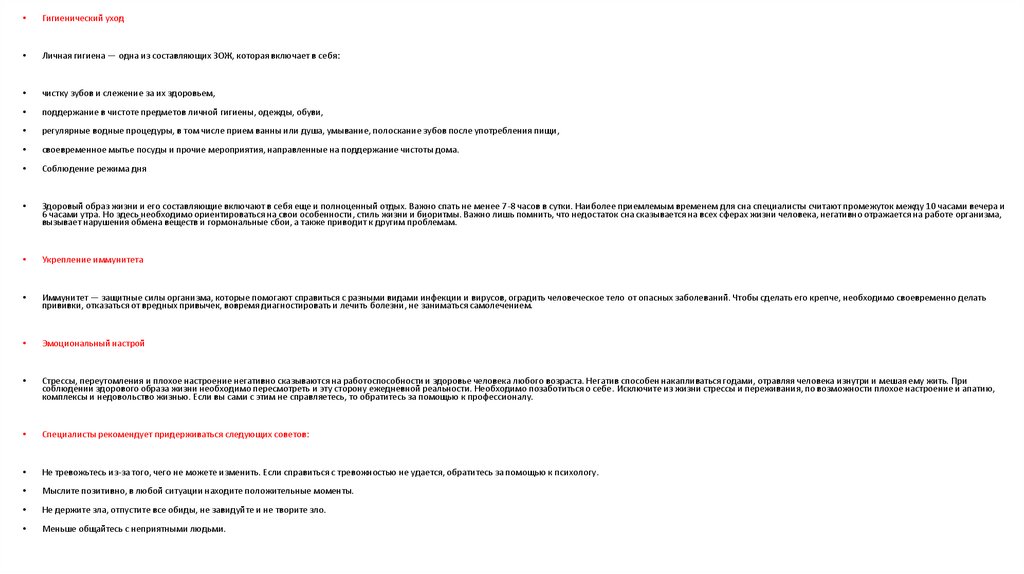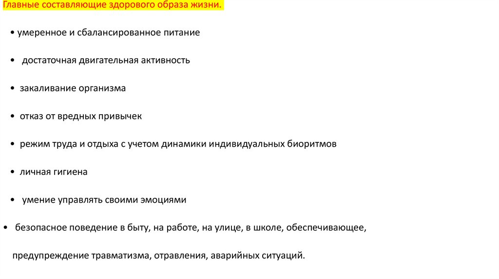 • Некоторые аспекты ЗОЖ, которые помогают сохранить здоровье: