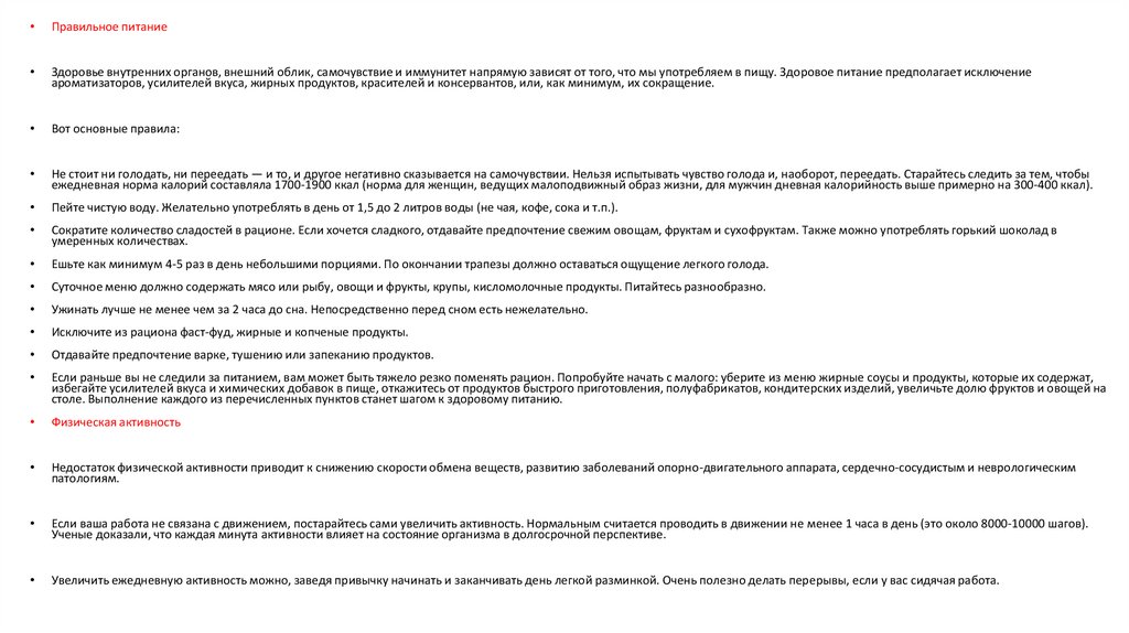 • Рациональное питание. Пища должна быть сбалансированной по макро- и микроэлементам.