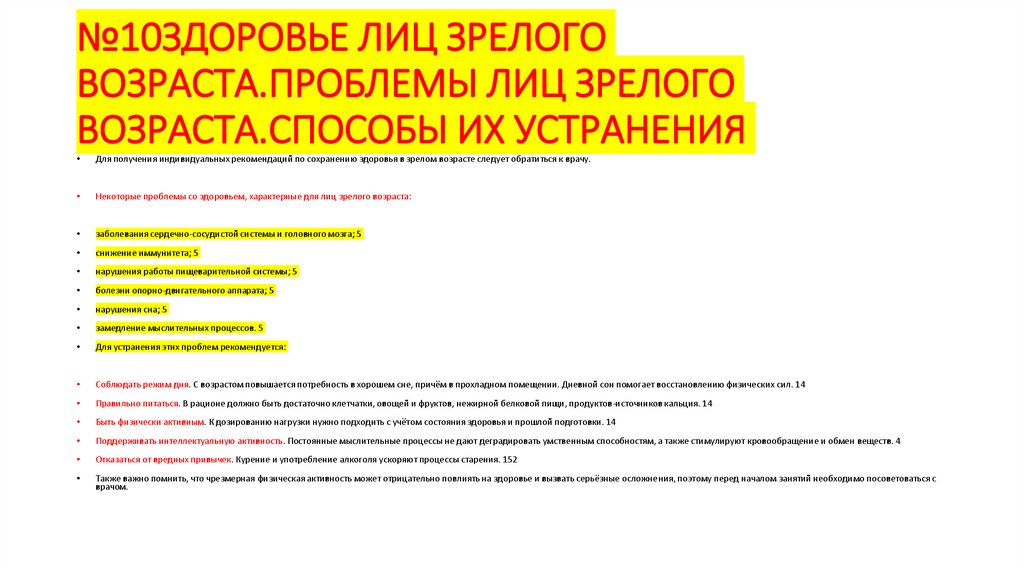 • Также к основным принципам сохранения здоровья в зрелом возрасте можно отнести регулярную физическую нагрузку,