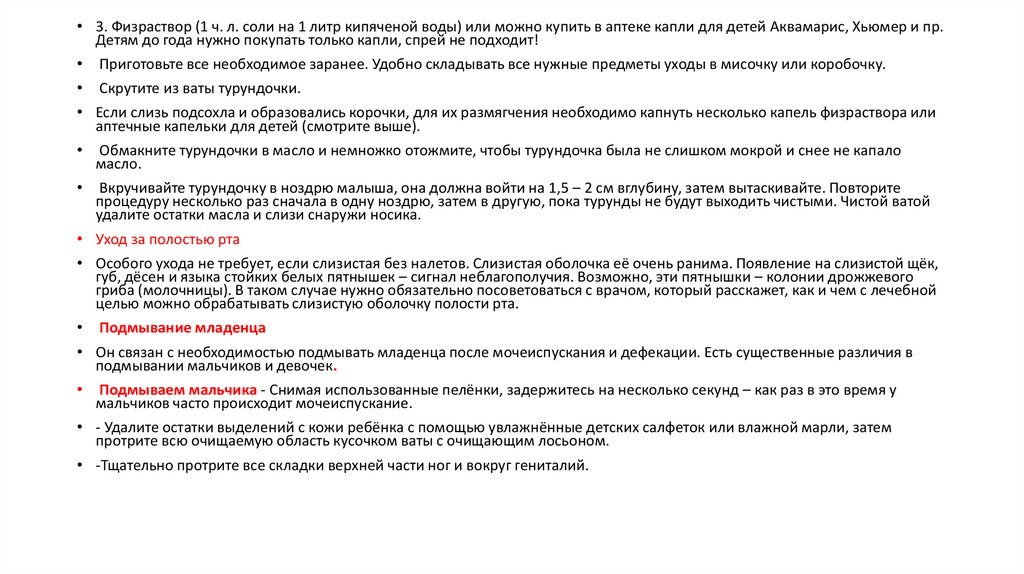 • 3. Физраствор (1 ч. л. соли на 1 литр кипяченой воды) или можно купить в аптеке капли для детей Аквамарис, Хьюмер и пр.Детям до года нужно покупать только капли, спрей не подходит!