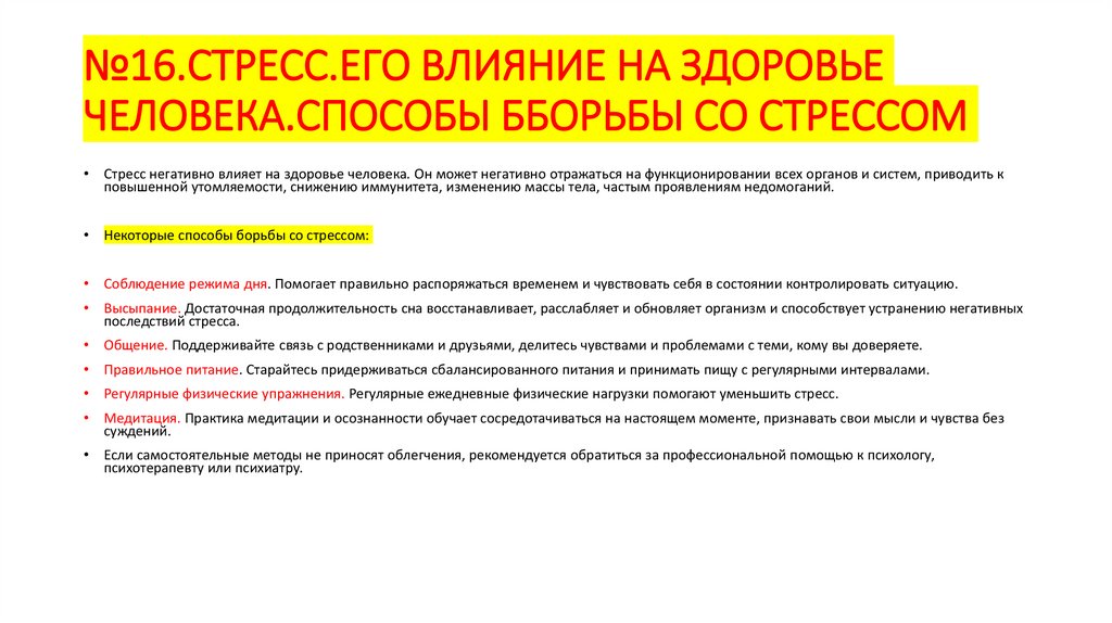 диагностировать и лечить болезни, не заниматься самолечением. Характеристики: стрессы, переутомления и плохое настроение негативно