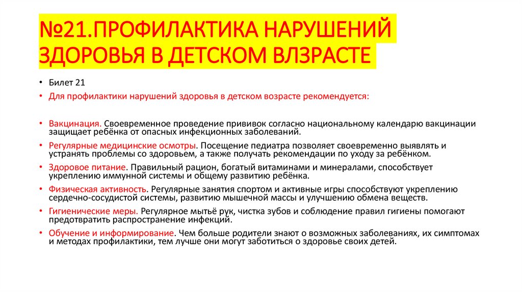 Профилактика неинфекционных заболеваний включает в себя следующие мероприятия: