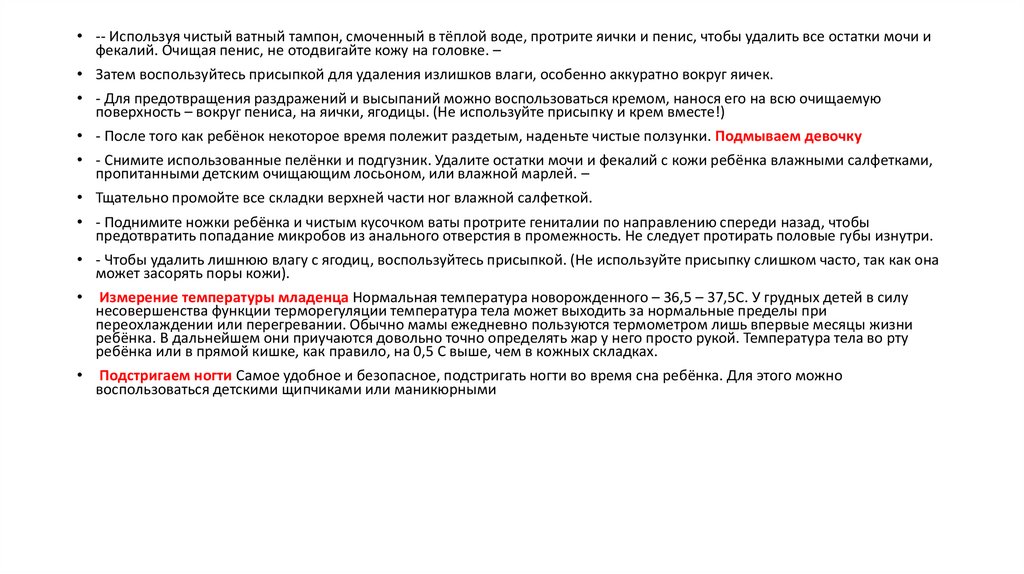 • -Тщательно протрите все складки верхней части ног и вокруг гениталий.