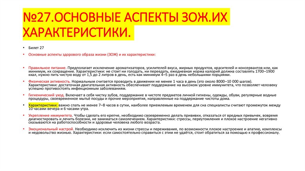 Основные аспекты здорового образа жизни (ЗОЖ) и их характеристики: