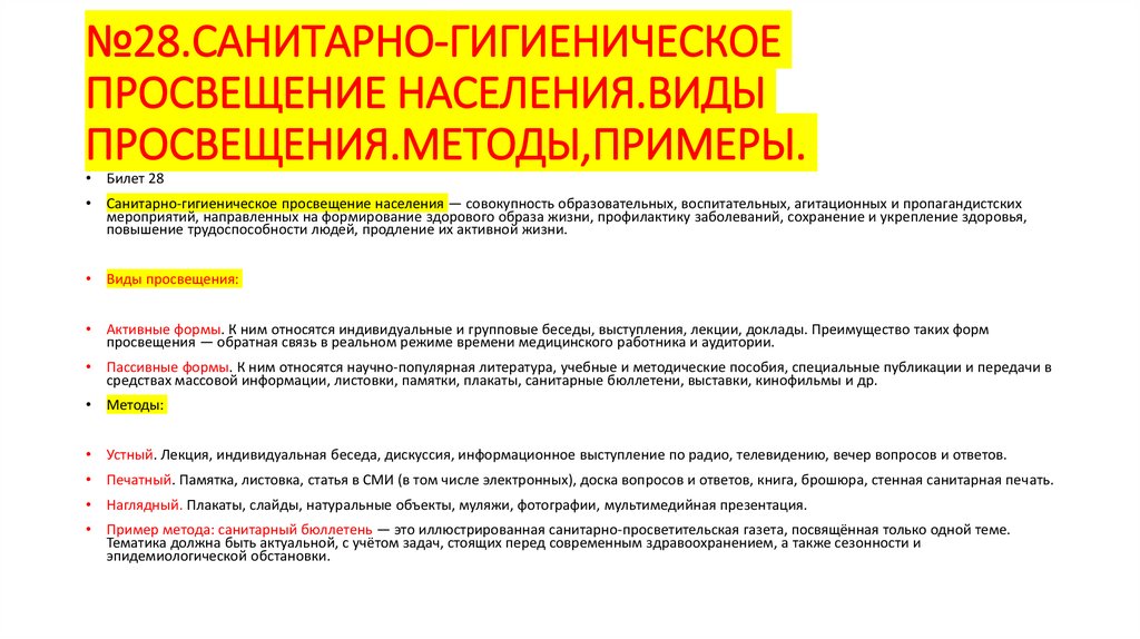 №28.САНИТАРНО-ГИГИЕНИЧЕСКОЕПРОСВЕЩЕНИЕ НАСЕЛЕНИЯ.ВИДЫ