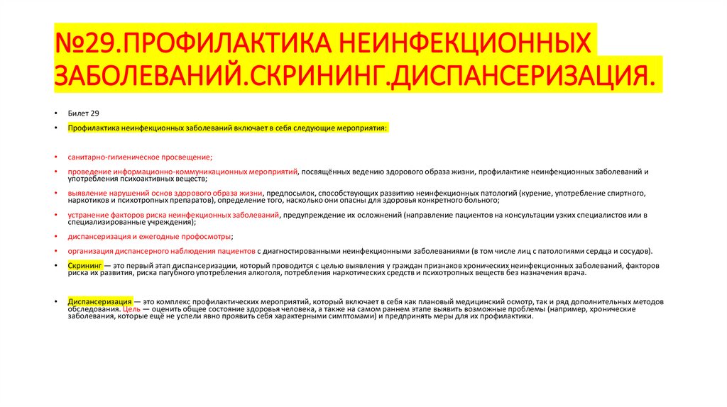 №29.ПРОФИЛАКТИКА НЕИНФЕКЦИОННЫХЗАБОЛЕВАНИЙ.СКРИНИНГ.ДИСПАНСЕРИЗАЦИЯ.