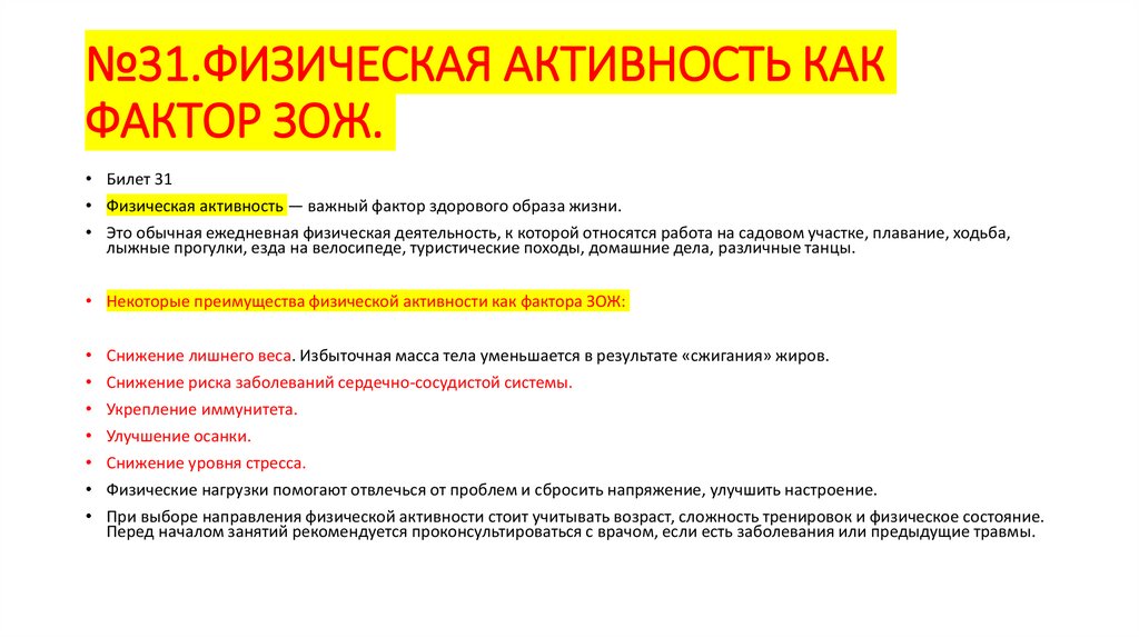 №31.ФИЗИЧЕСКАЯ АКТИВНОСТЬ КАКФАКТОР ЗОЖ.
