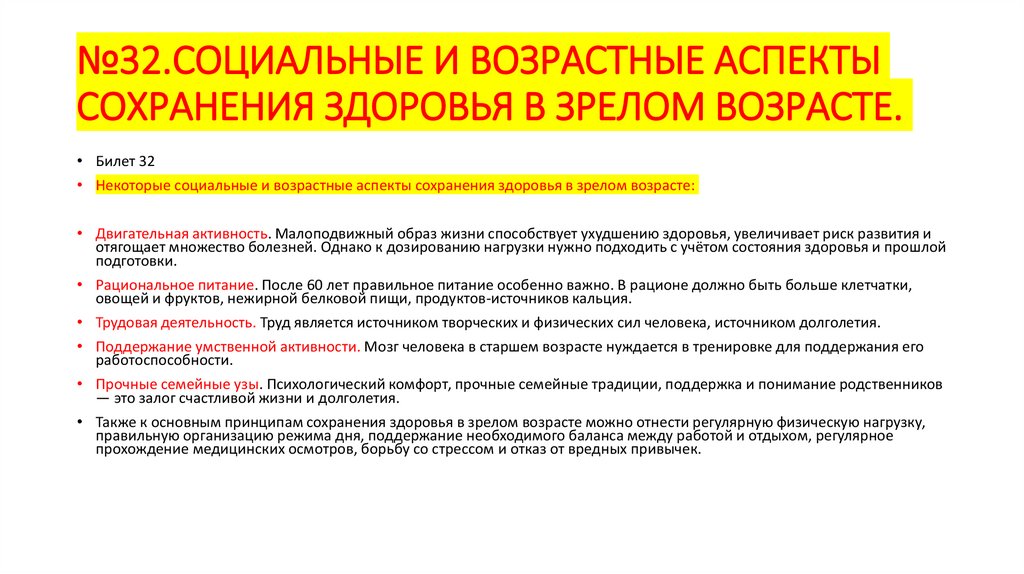 №32.СОЦИАЛЬНЫЕ И ВОЗРАСТНЫЕ АСПЕКТЫСОХРАНЕНИЯ ЗДОРОВЬЯ В ЗРЕЛОМ ВОЗРАСТЕ.