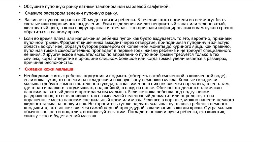 • - Удалите остатки выделений с кожи ребёнка с помощью увлажнённые детских салфеток или влажной марли, затем