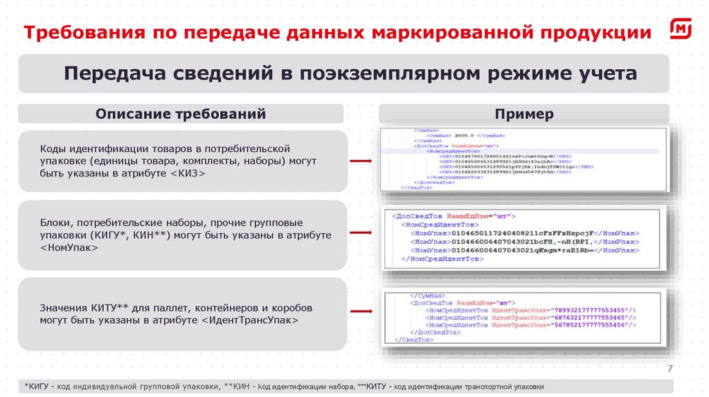 *КИГУ - код индивидуальной групповой упаковки, **КИН - kод идентификации набора, ***КИТУ - код идентификации транспортной упаковки