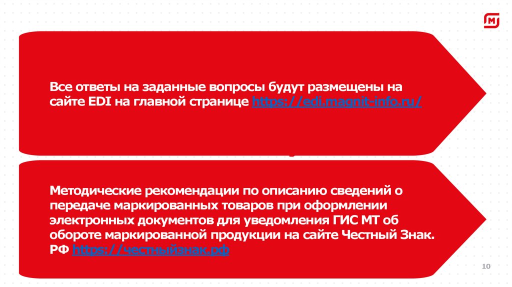 Все ответы на заданные вопросы будут размещены насайте EDI на главной странице https://edi.magnit-info.ru/