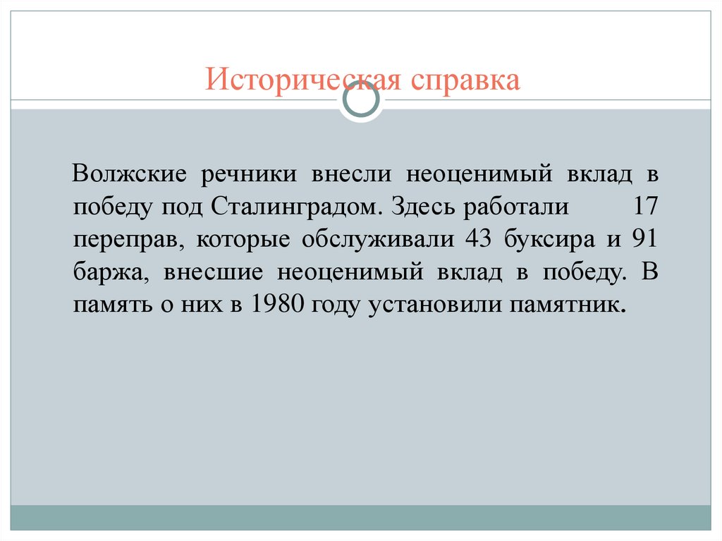 Историческая справкаВолжские речники внесли неоценимый вклад в