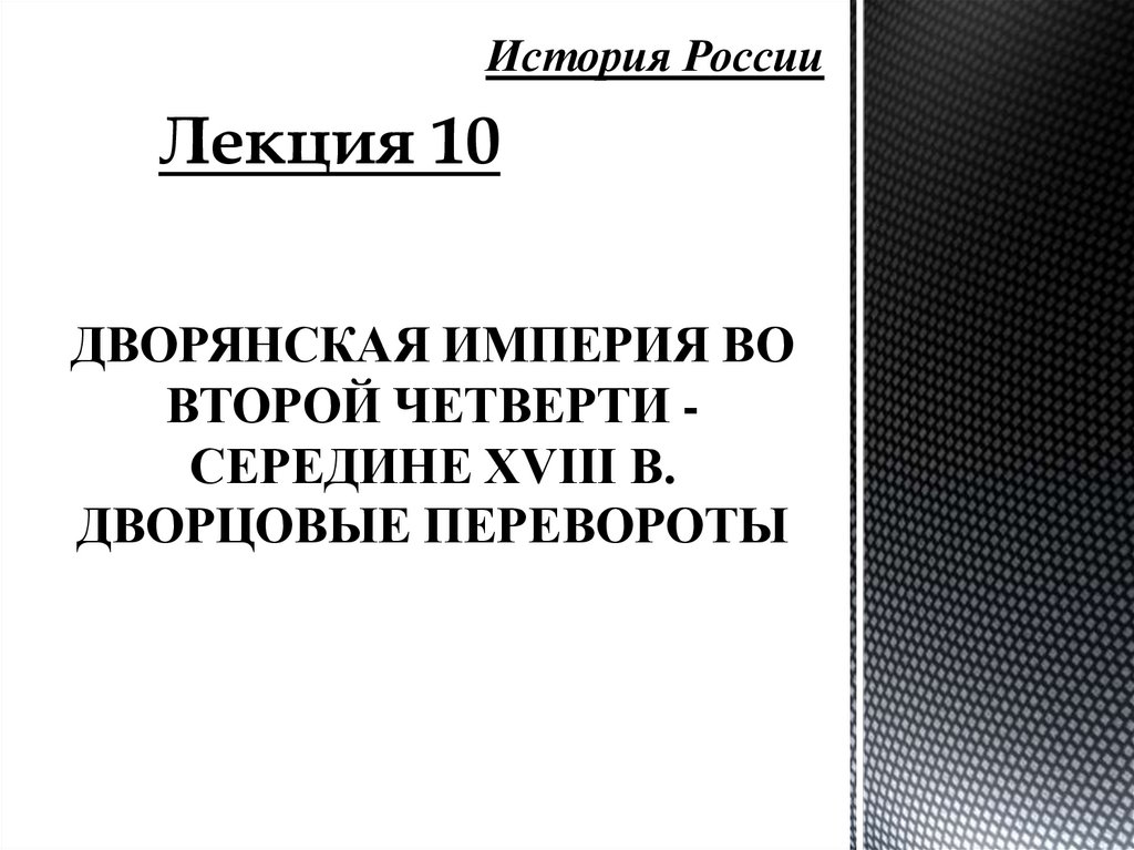 Лекция 10ДВОРЯНСКАЯ ИМПЕРИЯ ВО