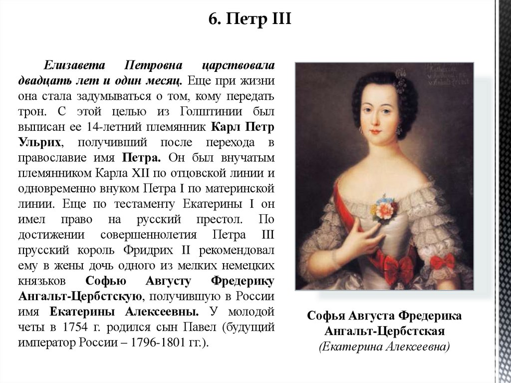 Карл Фридрих – муж старшей дочери Петра I Анны. Большинство Верховного тайного совета