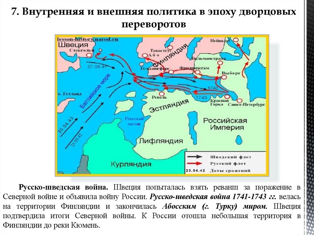 Северной войне и объявила войну России. Русско-шведская война 1741-1743 гг. велась