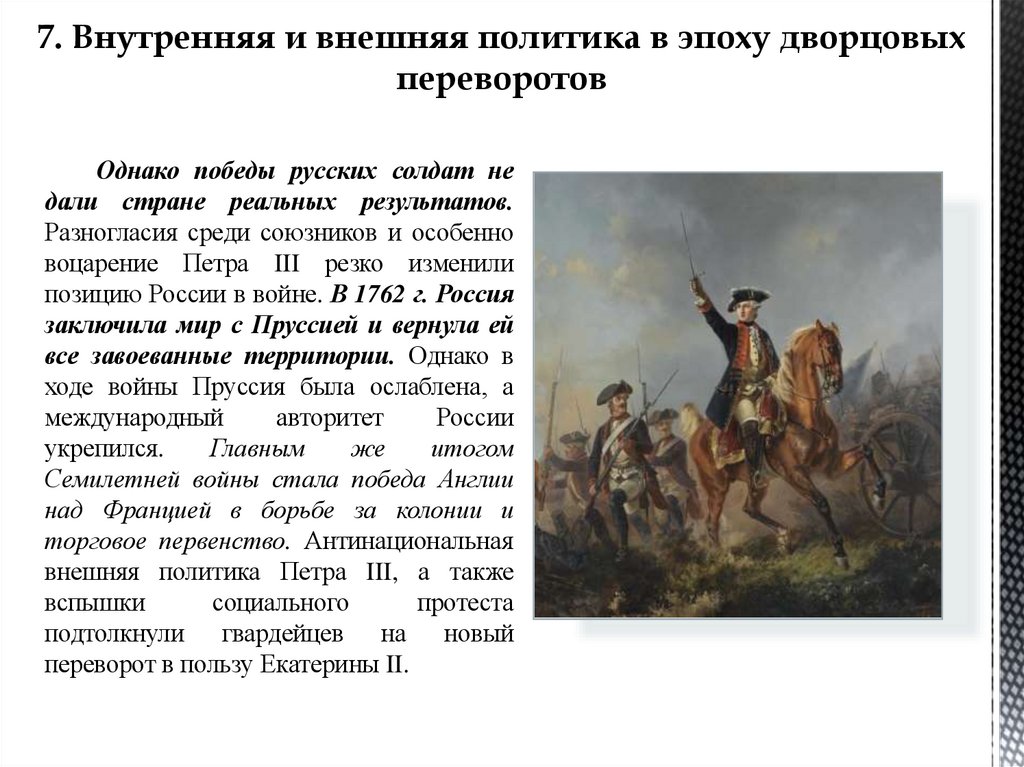 Семилетняя война. В 1756-1763 гг. вспыхнула англо-французская война за колонии. В