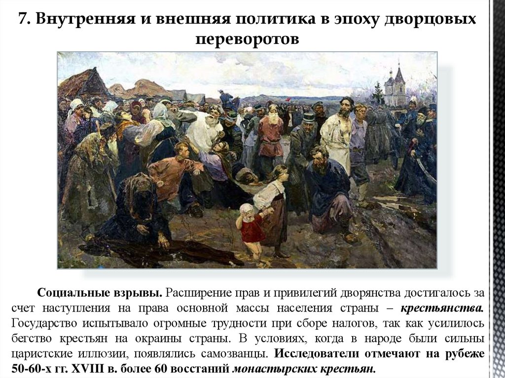 Социальные взрывы. Расширение прав и привилегий дворянства достигалось за