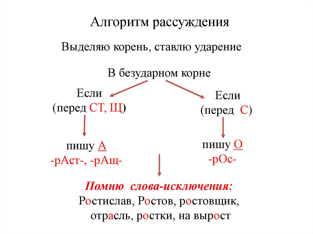 Алгоритм рассужденияВыделяю корень, ставлю ударение