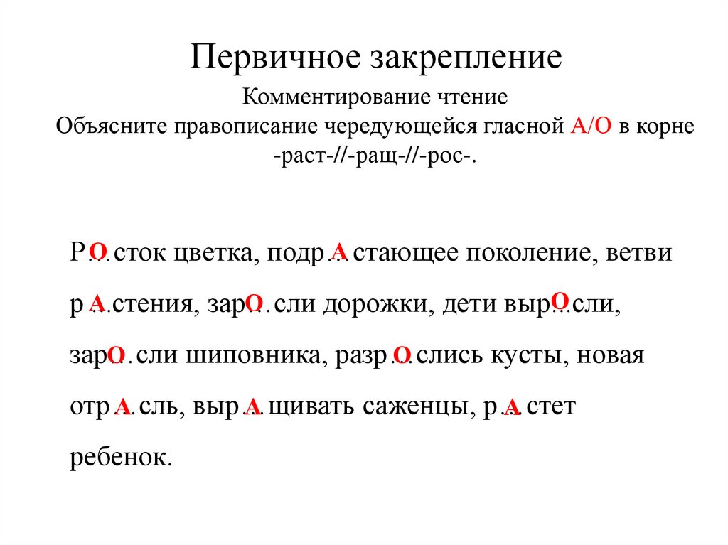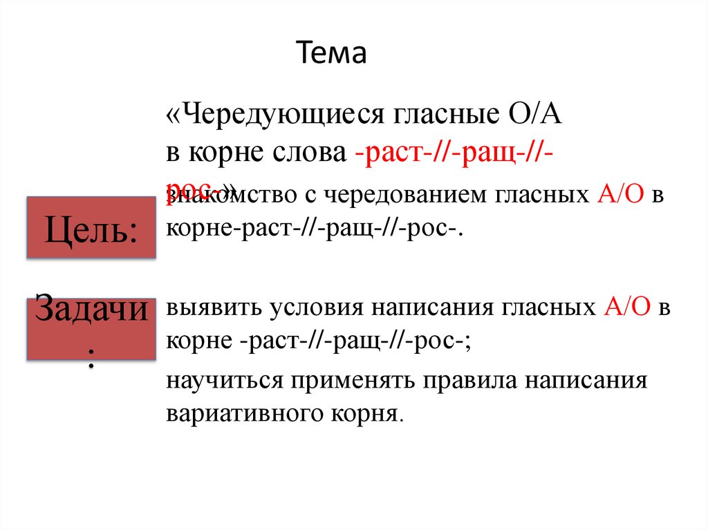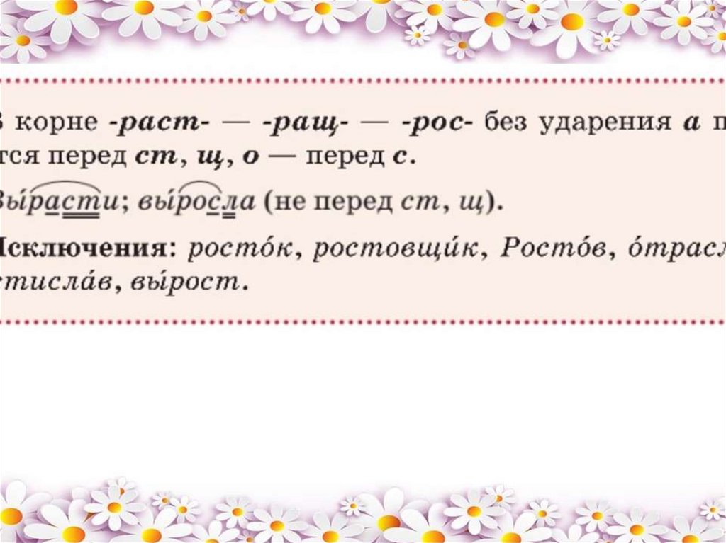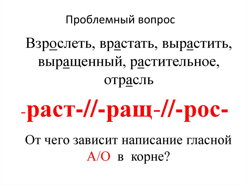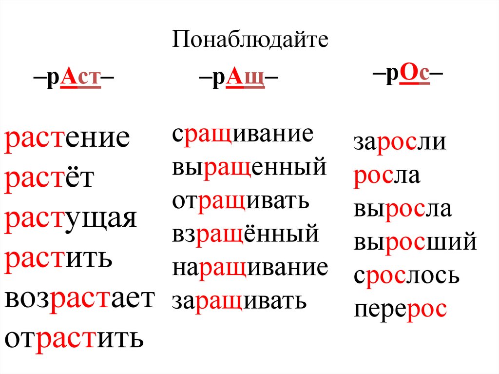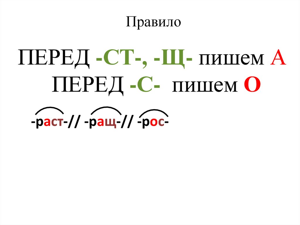 чередующихся гласных в корне –раст-//-ращ-//-рос-