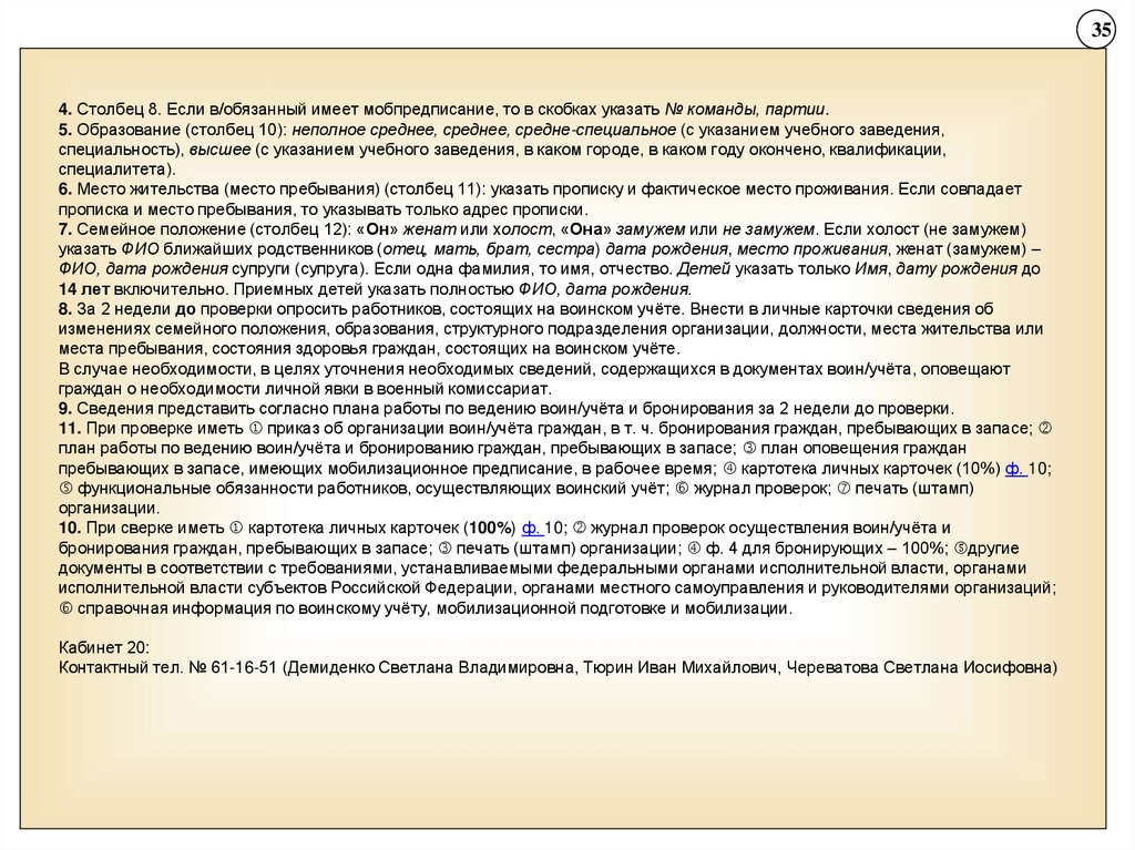 РУКОВОДЯЩИЕ ДОКУМЕНТЫ ПО ОРГАНИЗАЦИИ ВОИНСКОГО УЧЕТА6