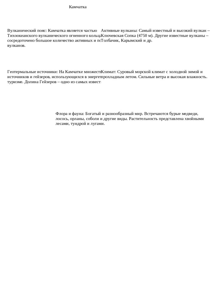 КамчаткаВулканический пояс: Камчатка является частью Активные вулканы: Самый известный и высокий вулкан –