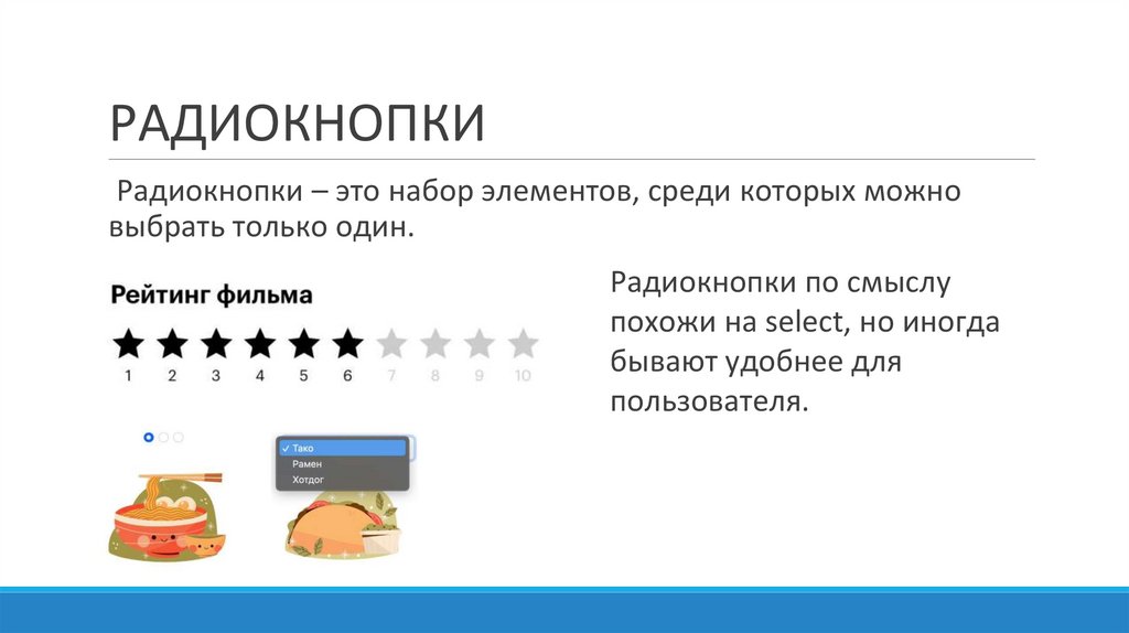 РАДИОКНОПКИРадиокнопки – это набор элементов, среди которых можно