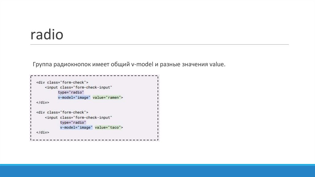 radioГруппа радиокнопок имеет общий v-model и разные значения value.