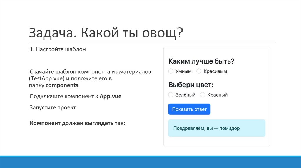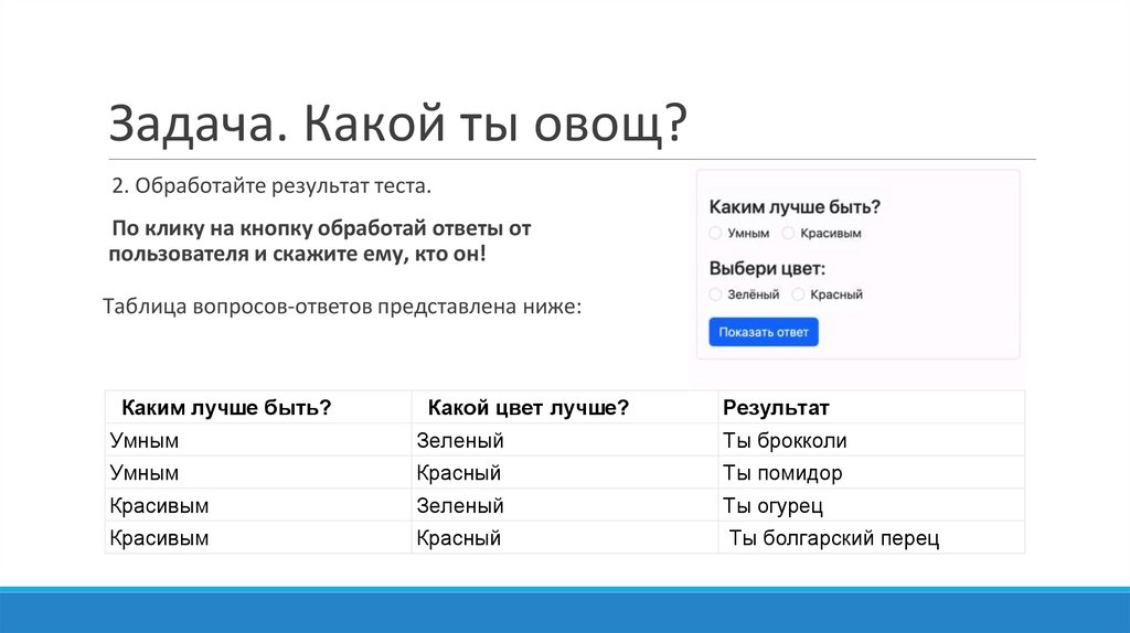 Задача. Какой ты овощ?2. Обработайте результат теста.