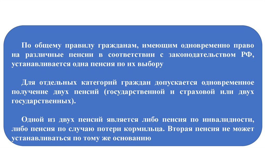 По общему правилу гражданам, имеющим одновременно правона различные пенсии в соответствии с законодательством РФ,