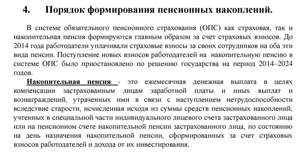 системе ОПС было приостановлено по решению государства на период 2014–2024