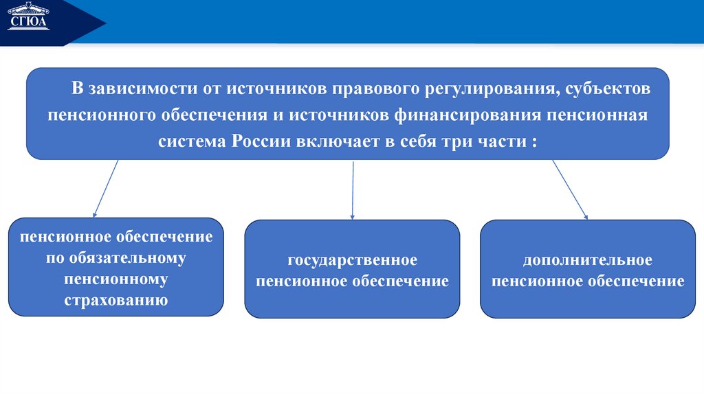 В зависимости от источников правового регулирования, субъектовпенсионного обеспечения и источников финансирования пенсионная