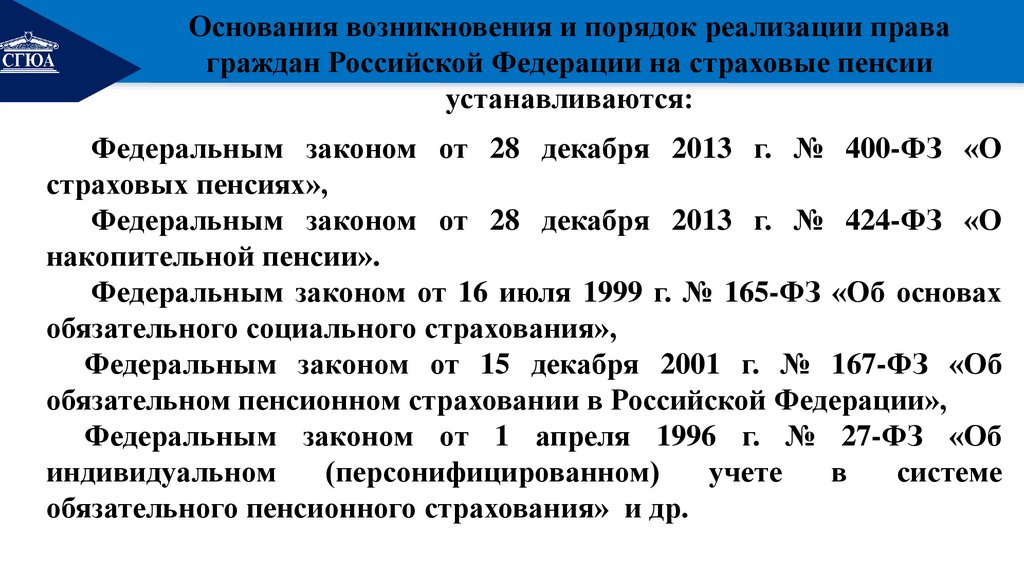 Основания возникновения и порядок реализации праваграждан Российской Федерации на страховые пенсии
