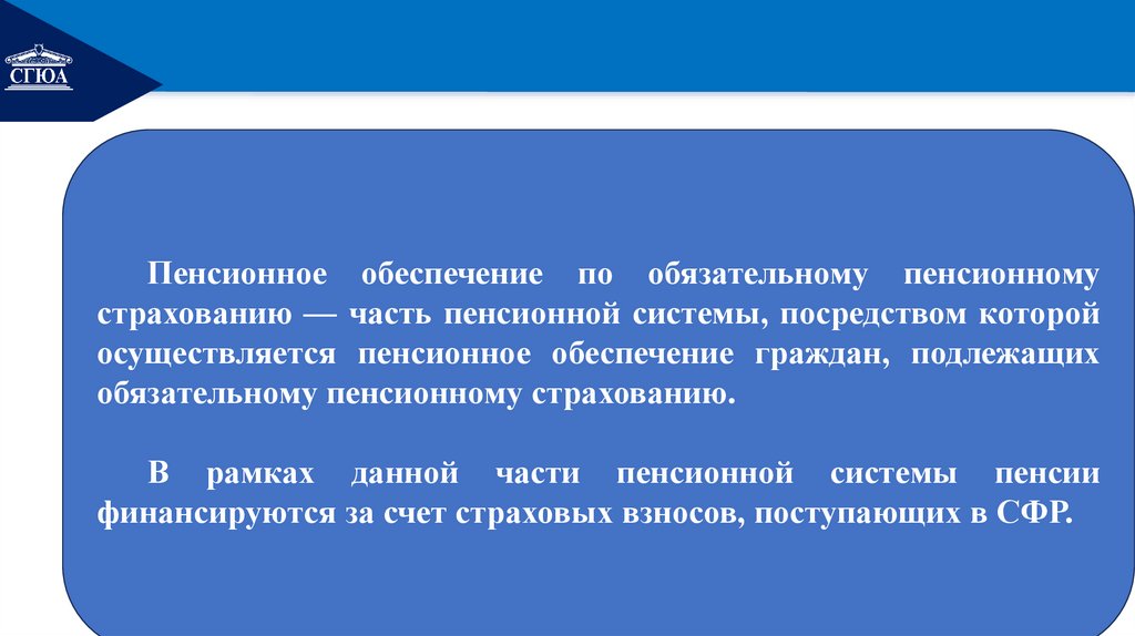 Пенсионное обеспечение по обязательному пенсионномустрахованию — часть пенсионной системы, посредством которой