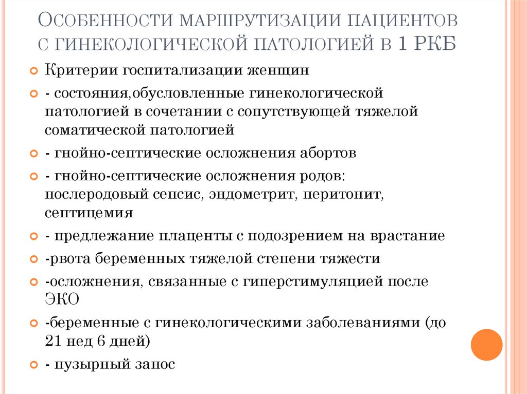 ОСОБЕННОСТИ МАРШРУТИЗАЦИИ ПАЦИЕНТОВС ГИНЕКОЛОГИЧЕСКОЙ ПАТОЛОГИЕЙ В 1 РКБ