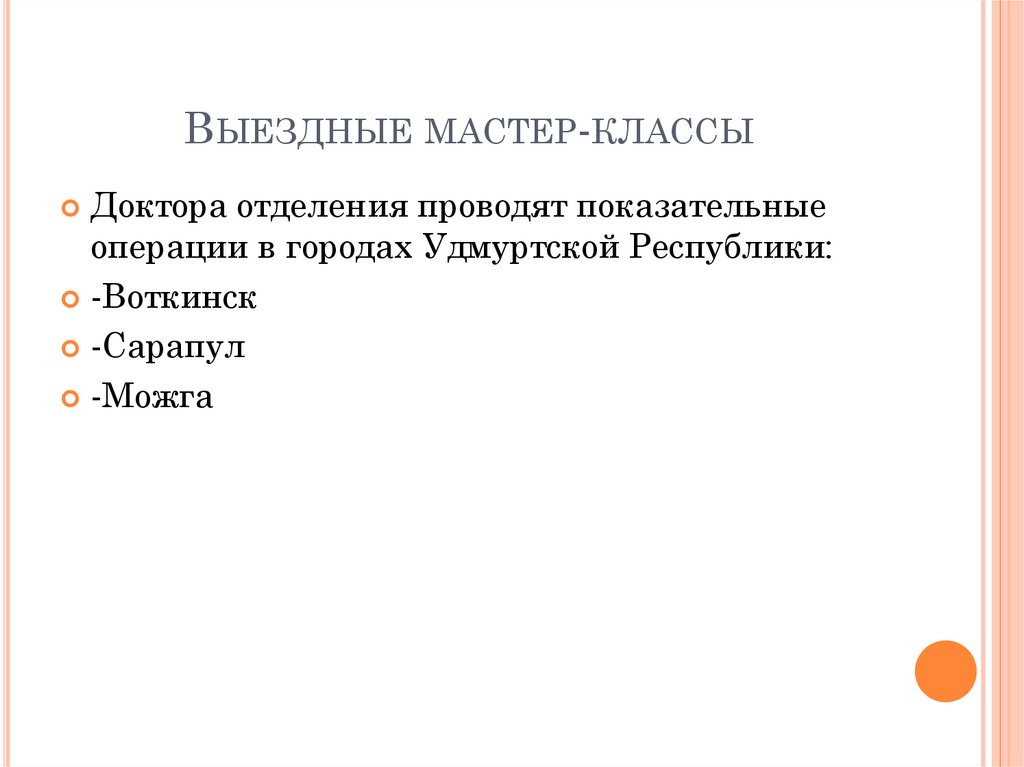 ВЫЕЗДНЫЕ МАСТЕР-КЛАССЫДоктора отделения проводят показательные