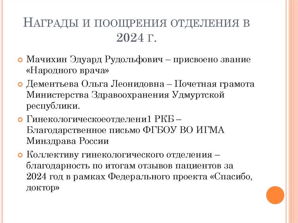 НАГРАДЫ И ПООЩРЕНИЯ ОТДЕЛЕНИЯ В2024 Г.