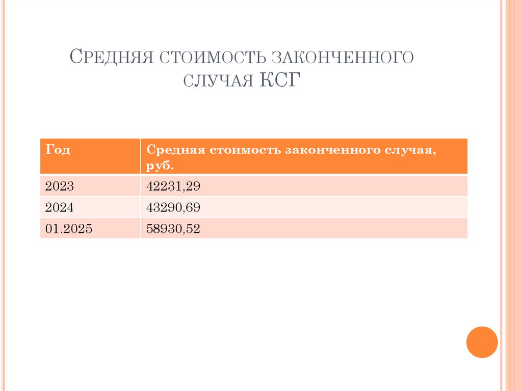 СРЕДНЯЯ СТОИМОСТЬ ЗАКОНЧЕННОГОСЛУЧАЯ КСГ