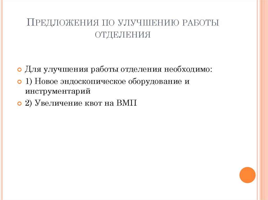 ПРЕДЛОЖЕНИЯ ПО УЛУЧШЕНИЮ РАБОТЫОТДЕЛЕНИЯ