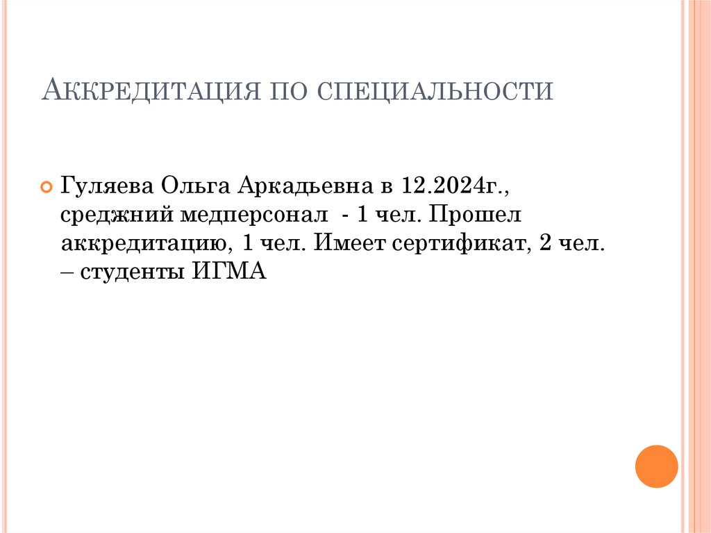 АККРЕДИТАЦИЯ ПО СПЕЦИАЛЬНОСТИГуляева Ольга Аркадьевна в 12.2024г.,