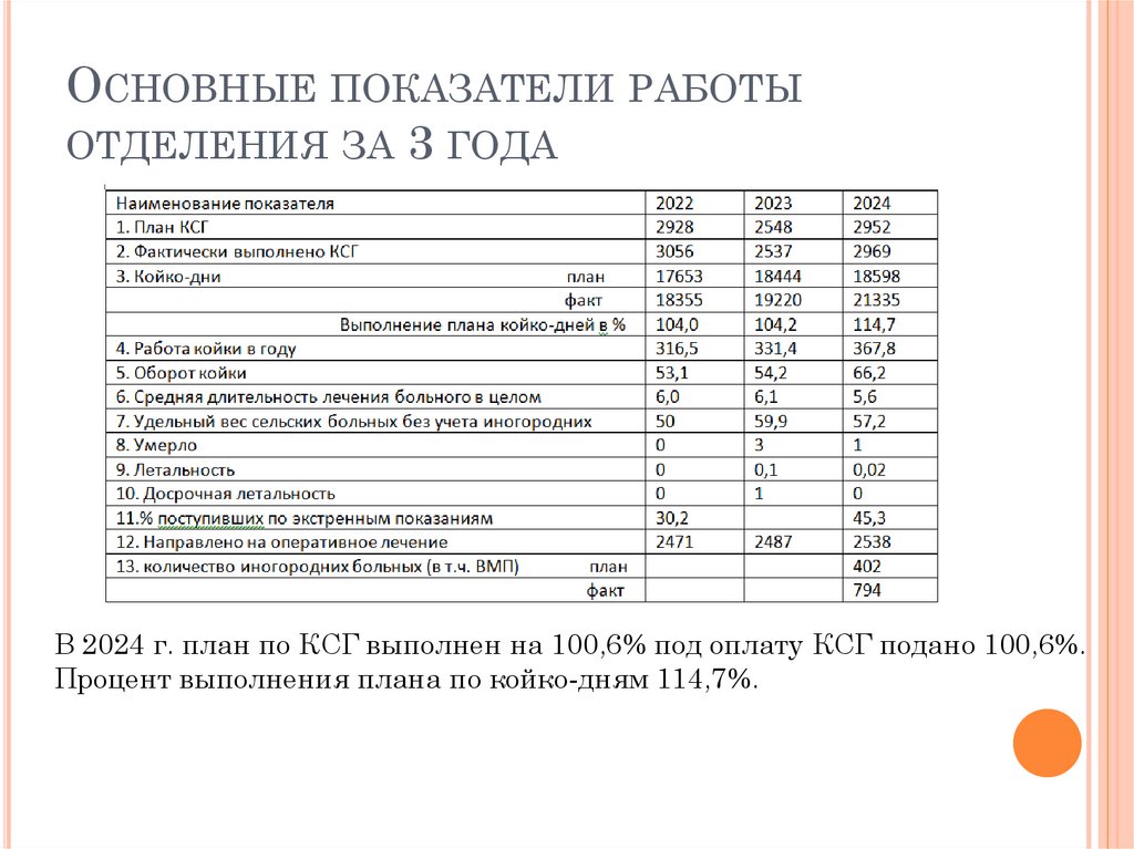 ОСНОВНЫЕ ПОКАЗАТЕЛИ РАБОТЫОТДЕЛЕНИЯ ЗА 3 ГОДА