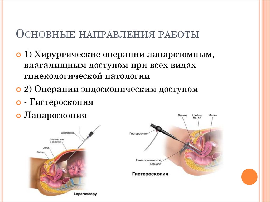 ОСНОВНЫЕ НАПРАВЛЕНИЯ РАБОТЫ1) Хирургические операции лапаротомным,