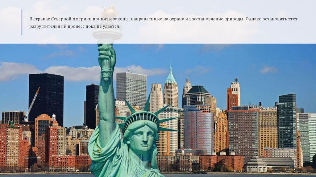 В странах Северной Америки приняты законы, направленные на охрану и восстановление природы. Однако остановить этотразрушительный процесс пока не удается.