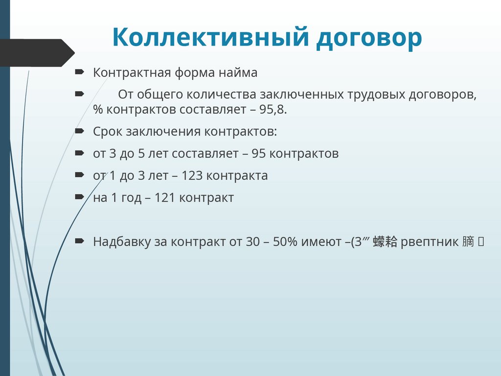 соблюдение правовых норм в связи с контрактной формой работы,выполнении норм коллективного договора;